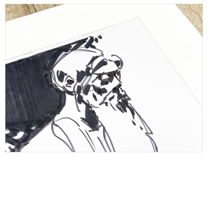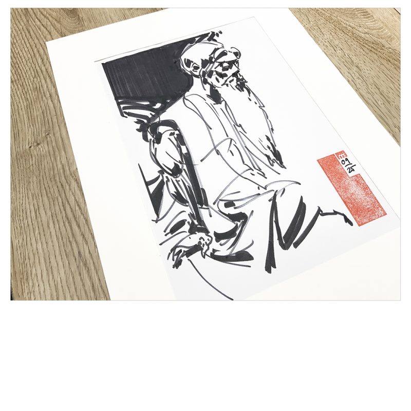 „There was no old chinese man present when i drew this. But he was there when I was done. I politely gave him a stamp mark.“